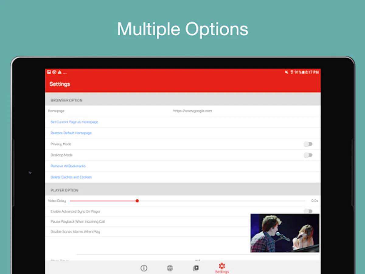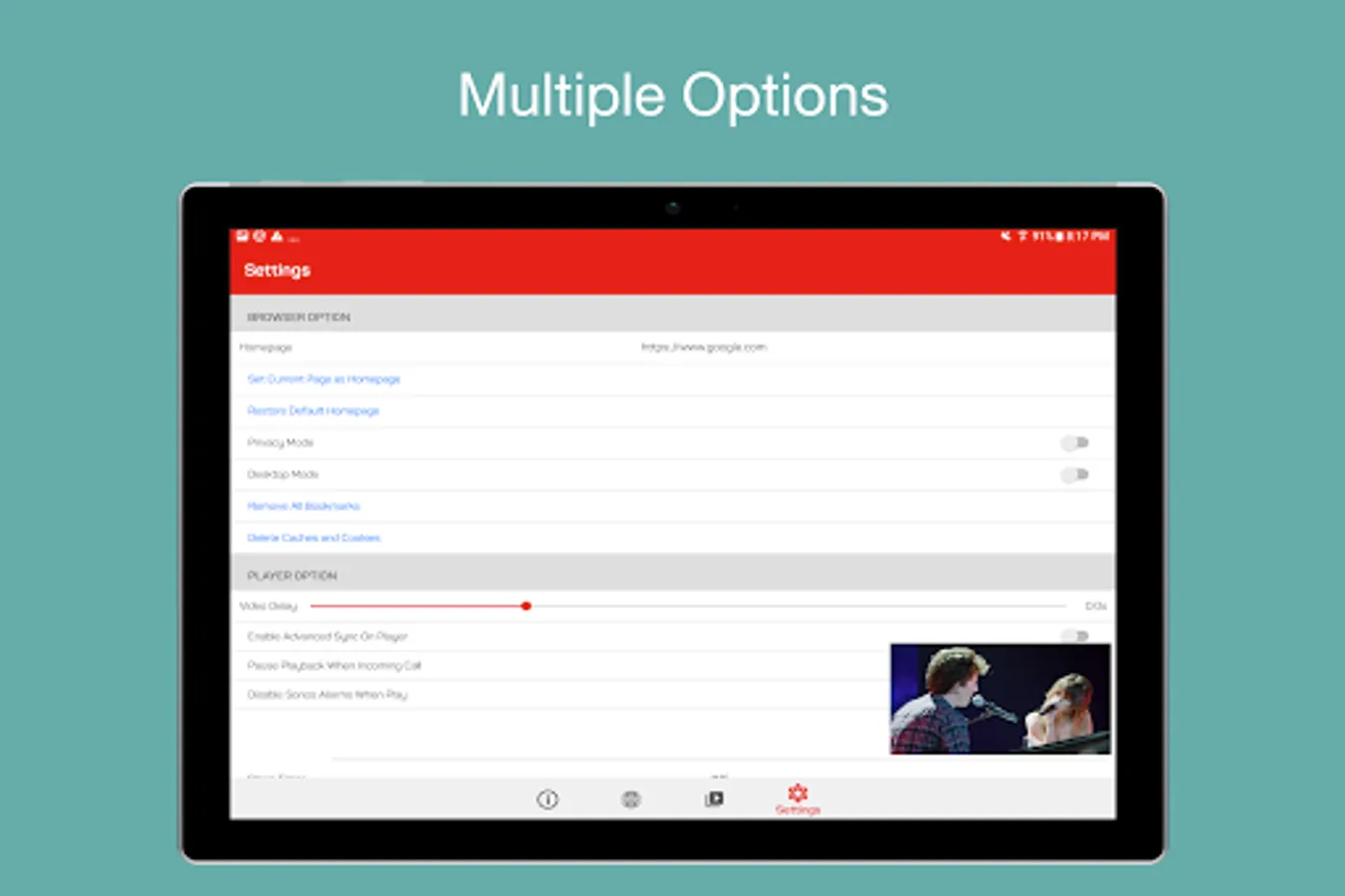 • Support web browser options