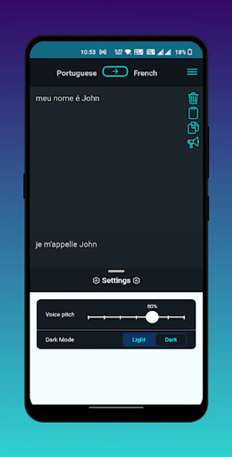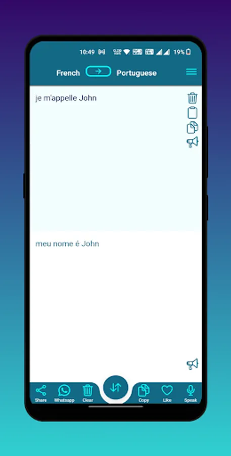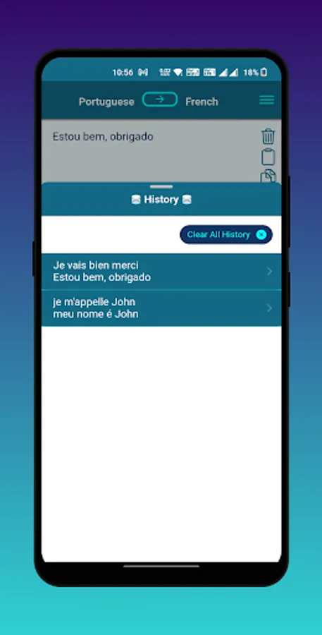 - You can copy any text on your device and by using paste button you can paste in app and translate your sentence.