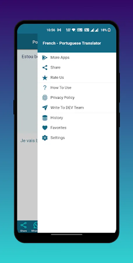 French to Portuguese translator app is a free voice translator as well as text translator which translate Portuguese to French or French to Portuguese. It translates words as well as complete sentences. Best app for easy and fast Portuguese to French translations.