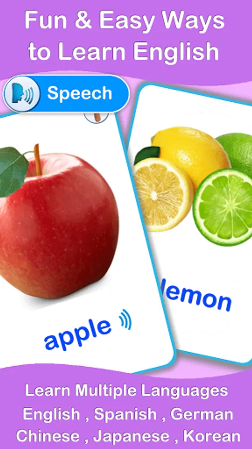 The app provides the best way to get started learning many kinds of Fruits which contains many cards, each word card are voice-enabled, and related words and pictures.
