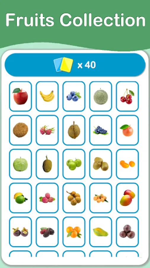 This app can help you to learn about 40 kind of fruits (ex: apple, pear, banana, strawberry ....).