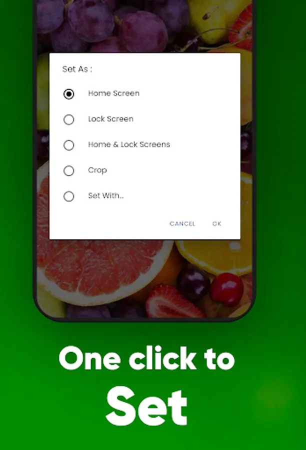 Select your favorite fruit as your wallpaper and get benefitted by preview option before you choose one for your home screen wallpaper. You can also crop it.