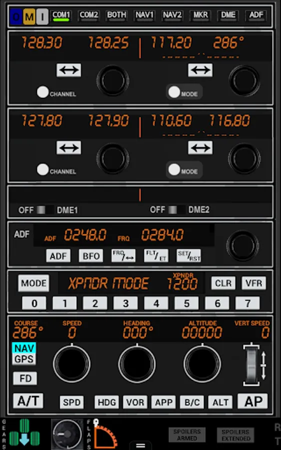 -Com1, Com2, Nav1, Nav2, ADF, Transponder