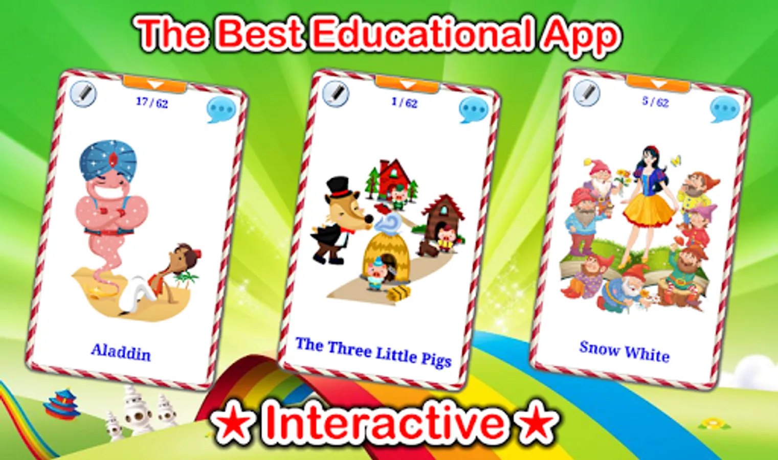 The app provides the best way to get started learning many kinds of Fairy Tales which contains many cards, each word card are voice-enabled, and related words and pictures.