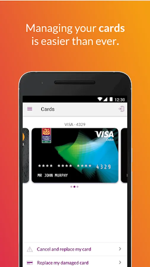 • Cancel or replace your lost, stolen or damaged debit or credit card instantly