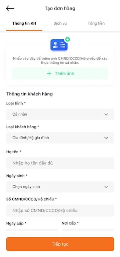 * Hỗ trợ tạo đơn hàng nhanh qua công nghệ đọc thông tin CMND/CCCD OCR, chọn gói dịch vụ có sẵn