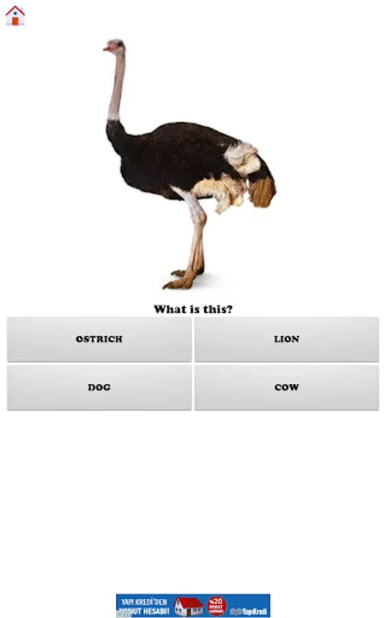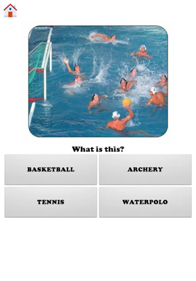 Game 1: One random picture from the selected category is displayed and you are asked to select the correct English word from the options.