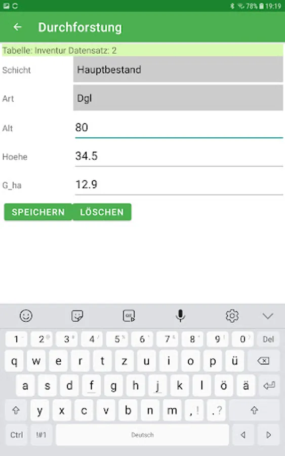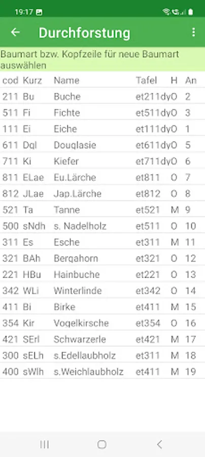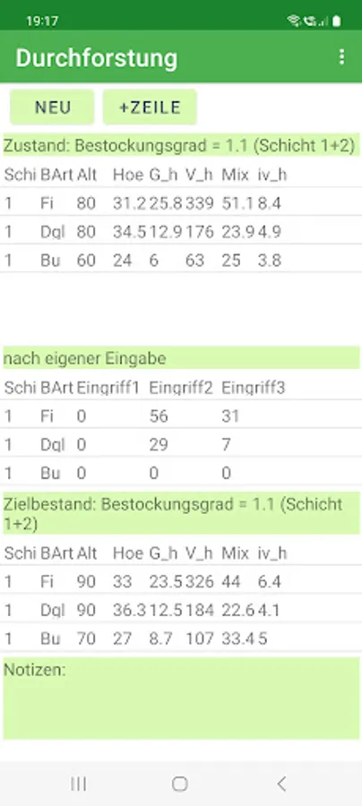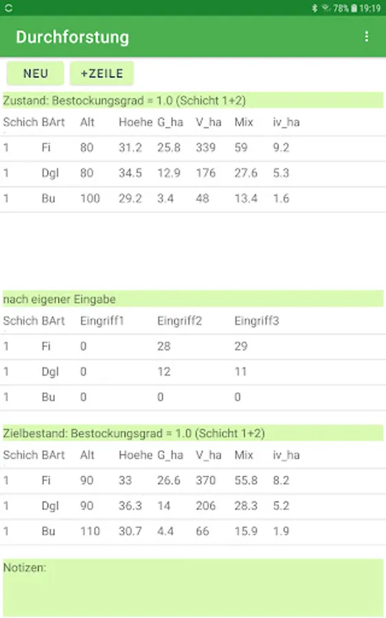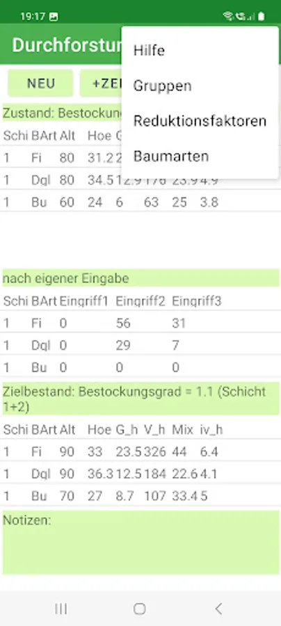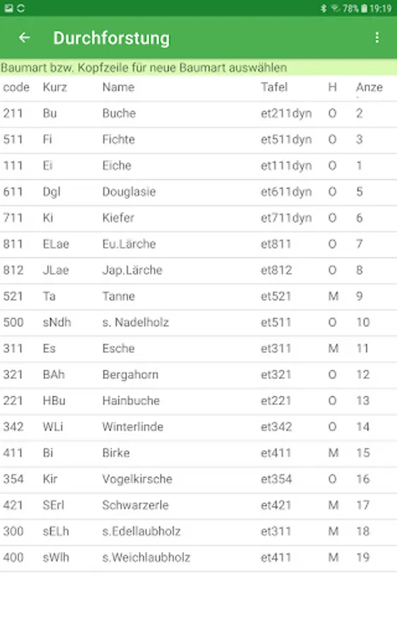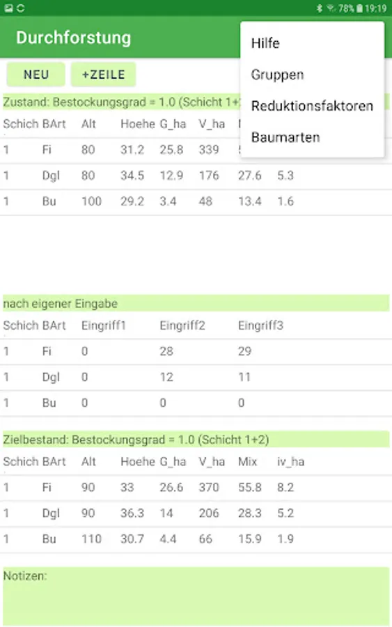 The app can be customized. In this way, further tree species and tree species groups can be defined and other yield tables can be assigned to the tree species. In addition, the target tillering degree and growth reduction factors can be set according to your own ideas for the yield table. More than 50 yield tables are stored.