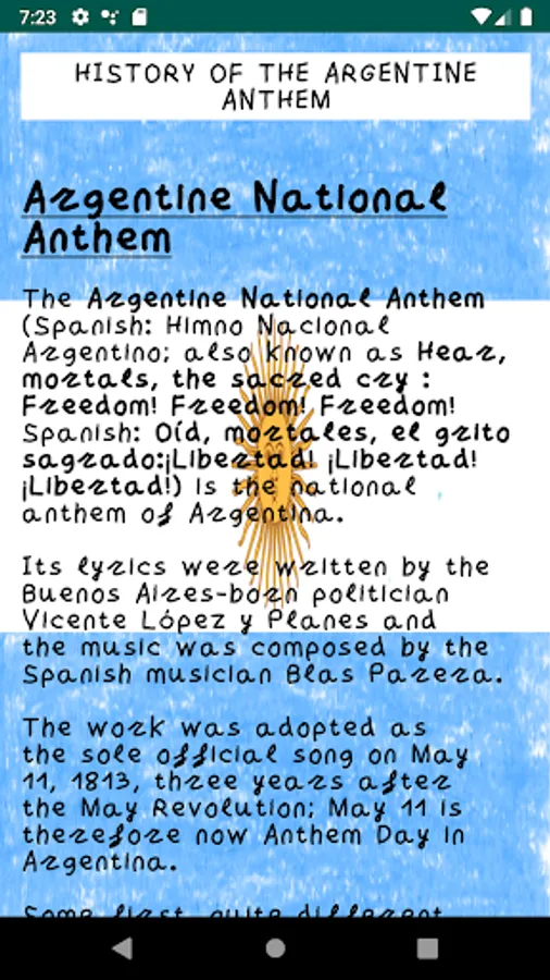Anthem Argentina is a simple application for Android with which you can listen to the anthem of Argentina anytime, anywhere.