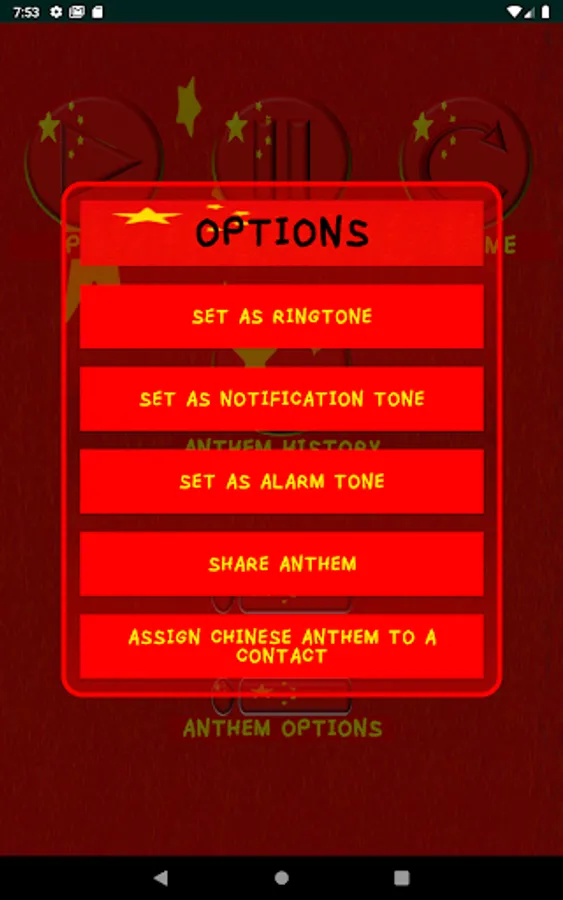 - You can assign the Chinese anthem as ringtone, notification tone