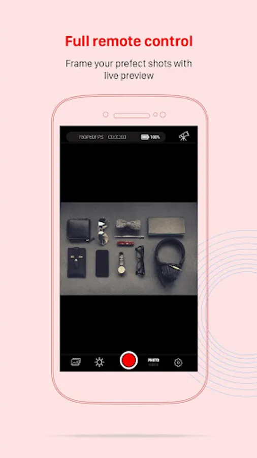 • Full remote control - adjust setting, start and stop recording, switch more, snap a picture while recording video.
