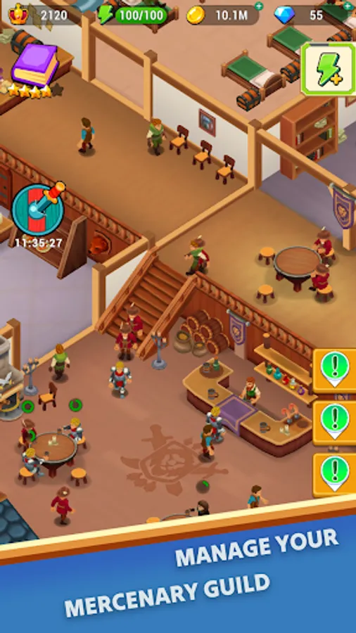 Ever wanted to start and manage a mercenary guild? Use your tavern as a mercenary base. Attract new mercenaries to your ranks! Add and upgrade new rooms in your tavern. Take care of your heroes otherwise they will not be able to complete quests. Increase your guild rating to have more heroes and more quests!