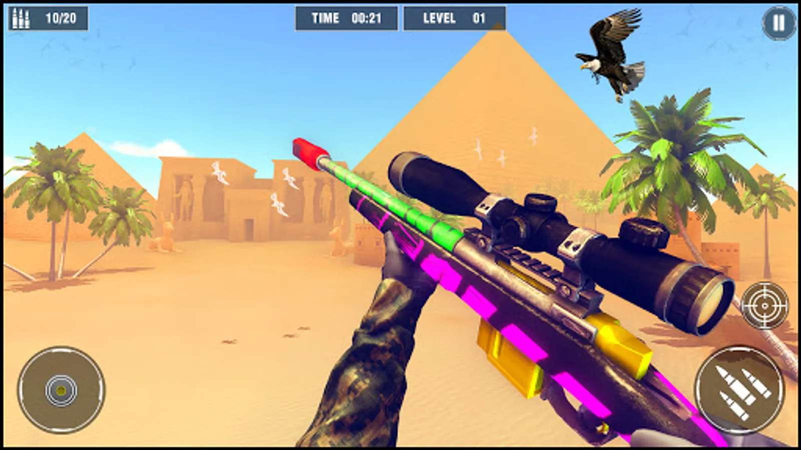 Attacking wild birds are not a child’s play in real hunting safari. There will be a number of birds for you to shoot, such as crows, sparrows, eagle, pigeons and owls. Enjoy different game modes in the new wild hunting game. You can hunt in your own style with either in archery mode or modern sniper mode or choose the traditional hunting mode for awesome experiences. Your commando action will help you get more birds and prevent any flying away. Do not let your shots miss the target as your mission will be failed if you miss your aims and birds get away. Be the sharpest frontline huntsman of 2021 who can get the prize hunt by either of the different gameplay modes. Fulfill all your missions successfully to get to harder levels and more awards. Upgrade your hunting weapons to achieve new adventures and to have the real hunting fun.