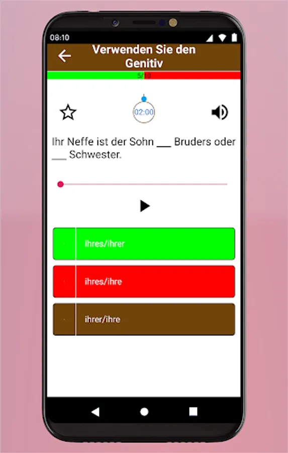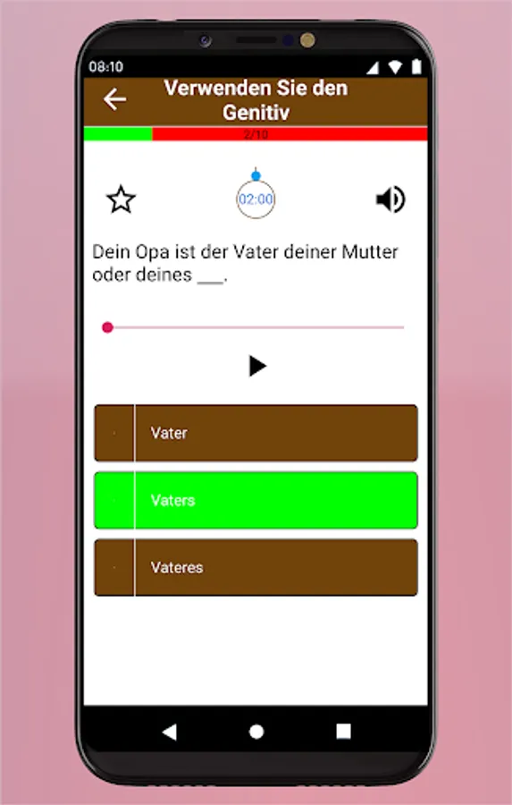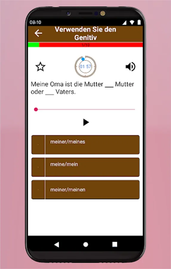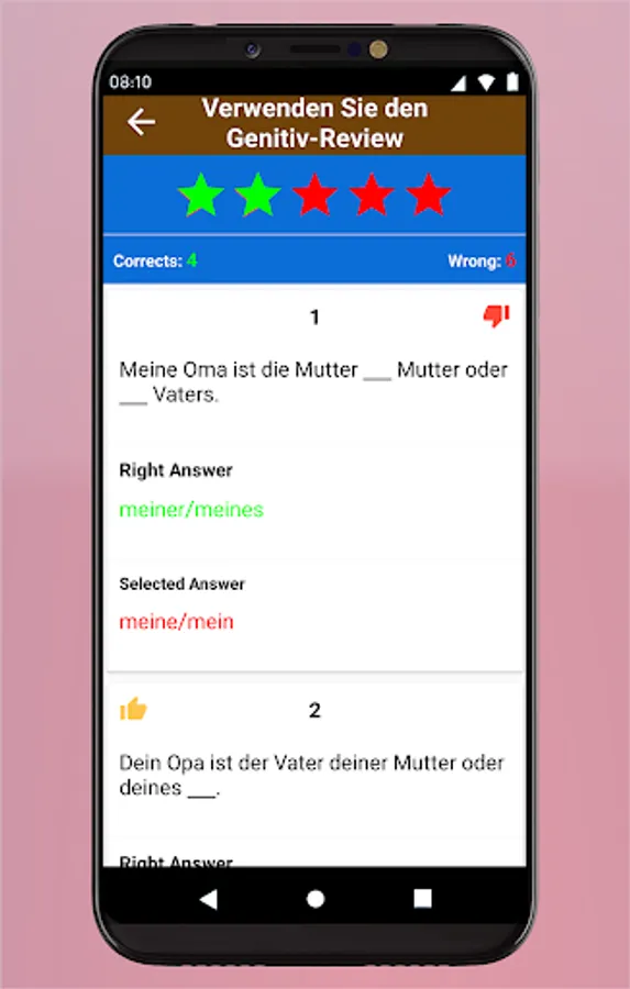 Learn German for free with daily exercises. This application helps you to learn German quickly and easily in a few minutes. Exciting lessons will help you learn fun vocabulary and improve your grammar knowledge.