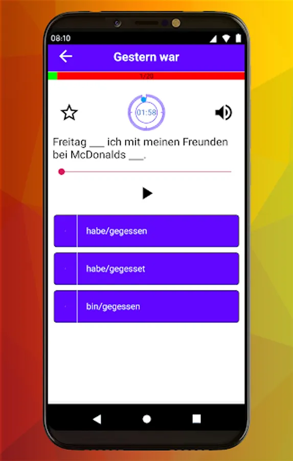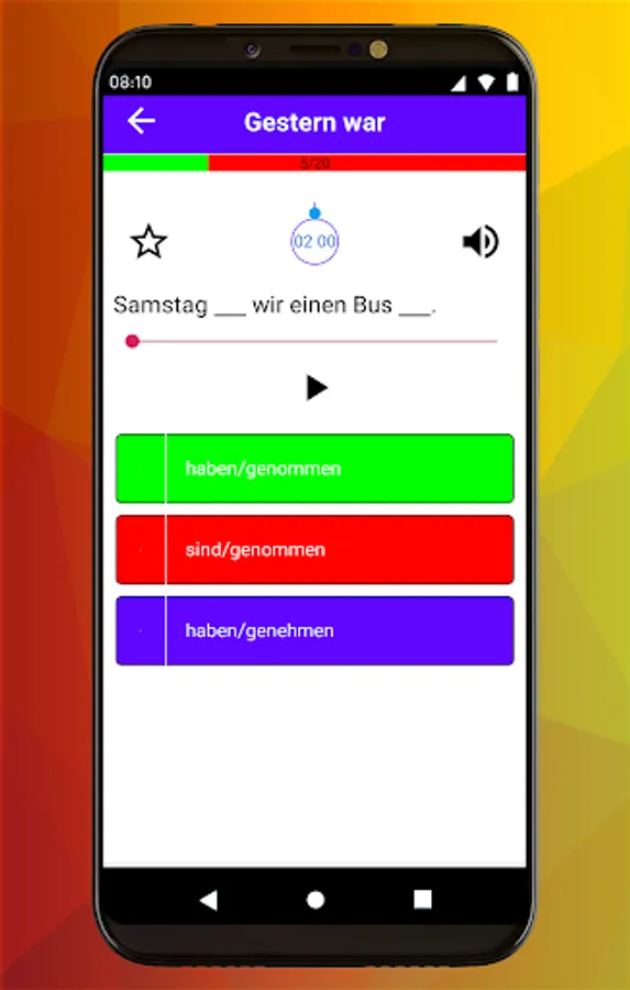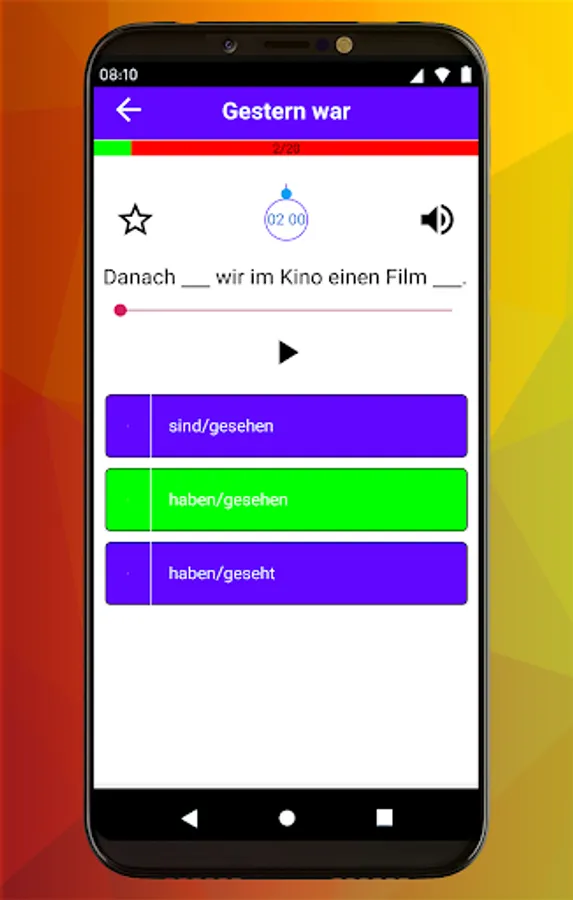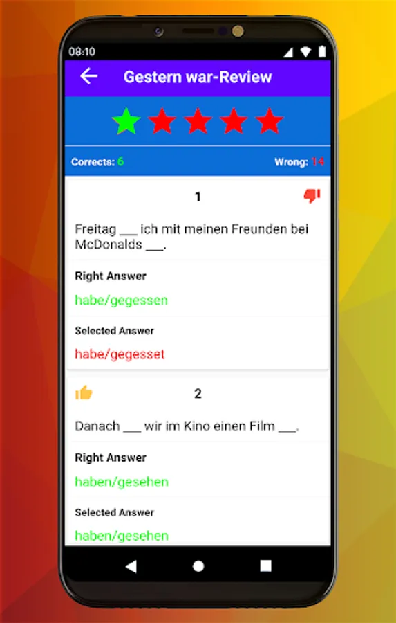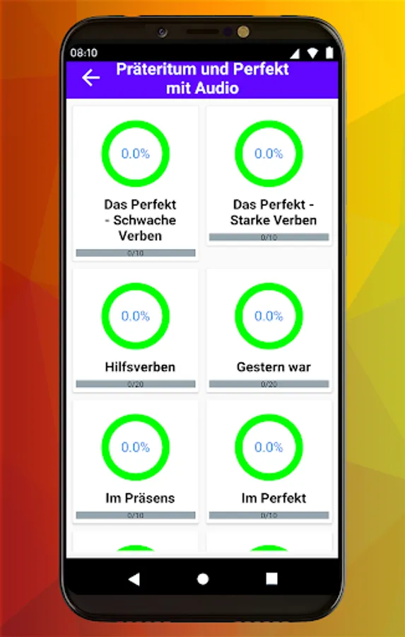 German grammar exercises: Additional materials Perfect / Education Past participle II. Yesterday (Perfect) - exercises with solutions. In our app, you will learn and practice for use and education of the perfect.