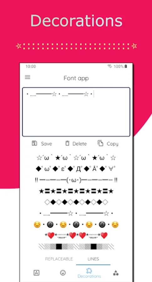 Font app provide you the power of using fancy and stylish fonts in any other app. Just select the font and start writing. You can also decorate your text with variety of decorations, lines and symbols provided in the app. So, show your style in the social media. Make your own creative and attractive caption to give a feel to your photo. Like and followers are on the way.