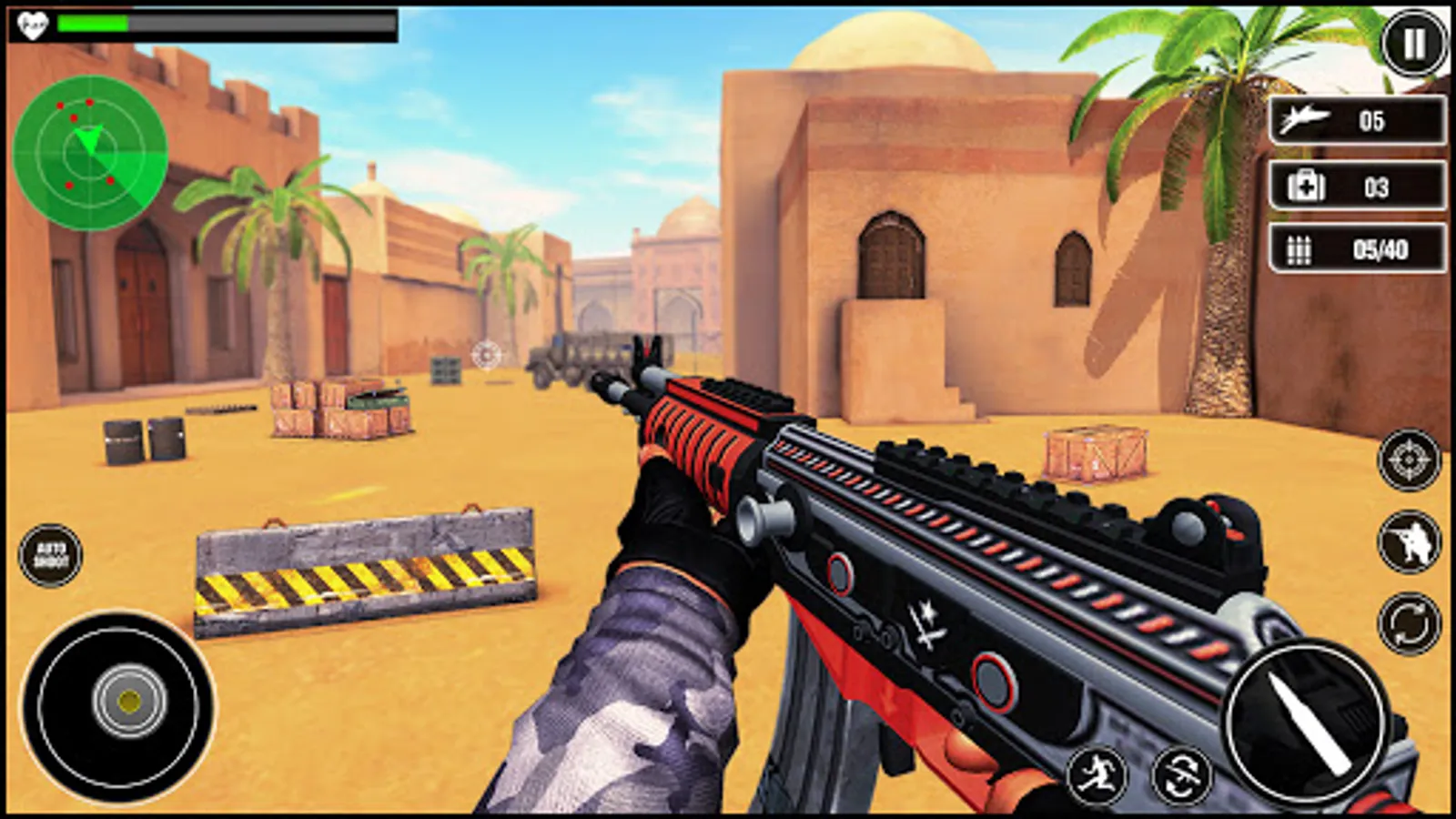 Choose from a diverse weapons arsenal and navigate the battlefield with intuitive controls in counter terrorist games. Locate your target, take aim, and deliver the decisive shot. These high-octane offline FPS games place you on the frontline of gun warfare. When the bullets run out, rely on your combat skills to neutralize the enemy. Your mission: to hunt down terrorists with target shooting and cement your legacy as a sniper hunting legend shooter.