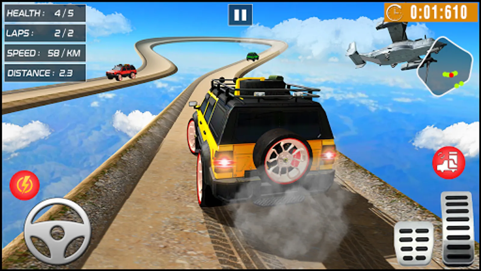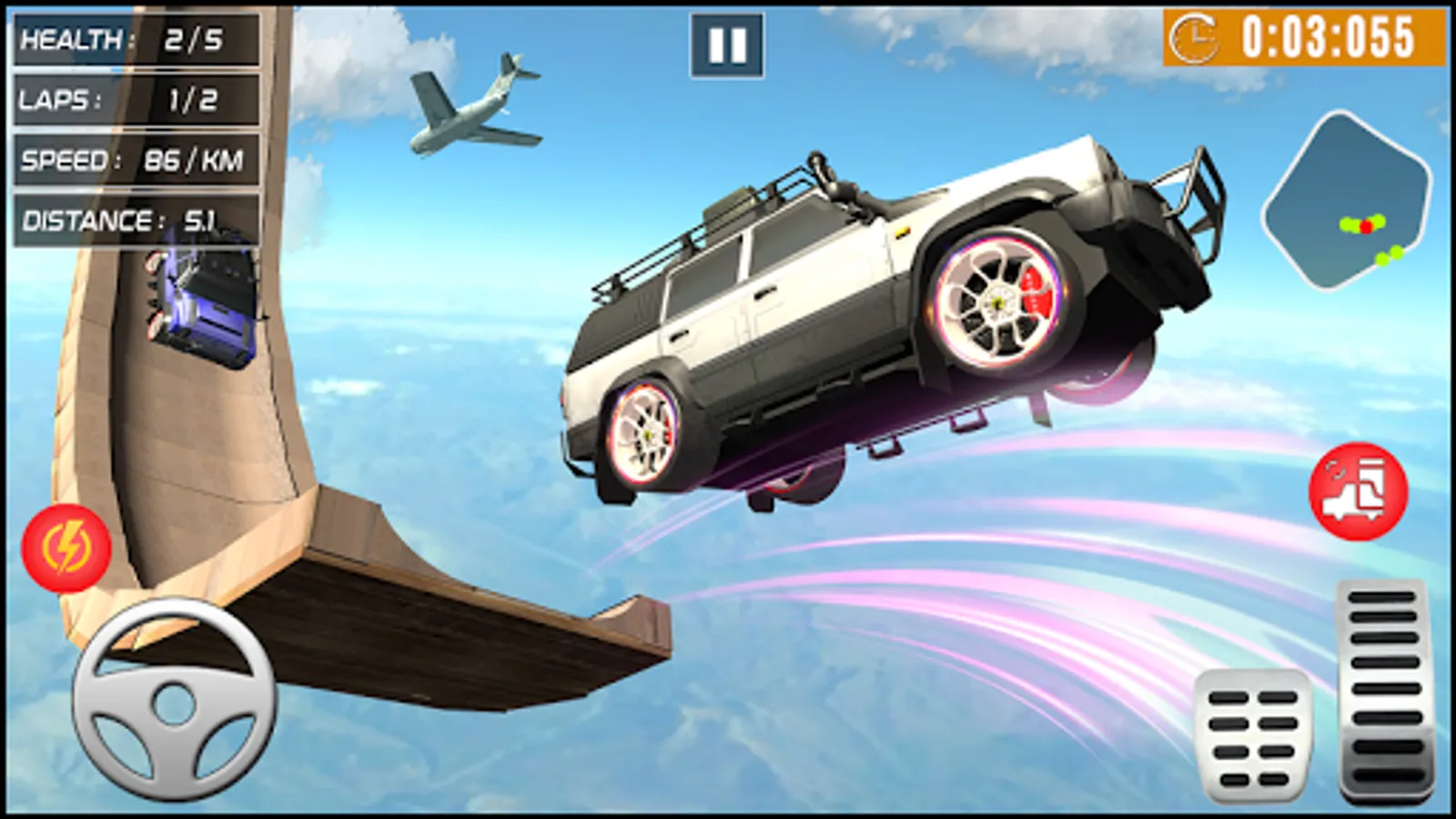 - Avoid hurdles, jump through mega ramps