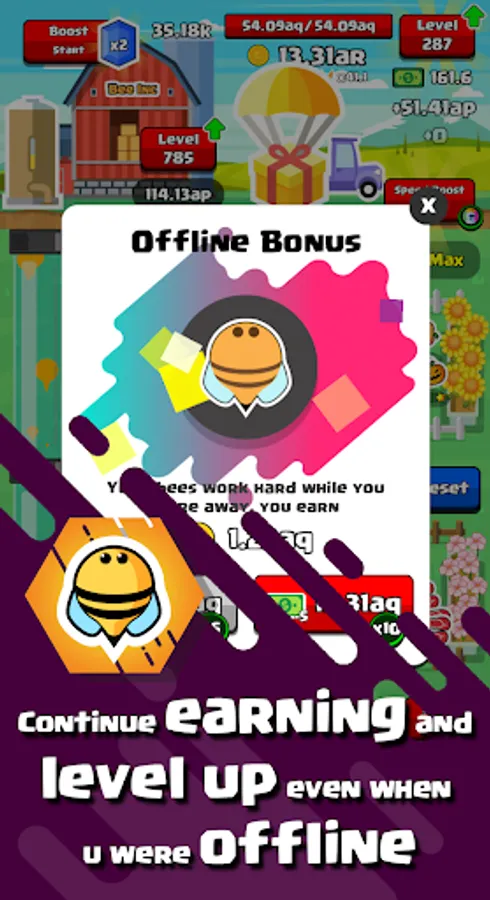 - Become a rich bee tycoon! Just by tapping and clicking!