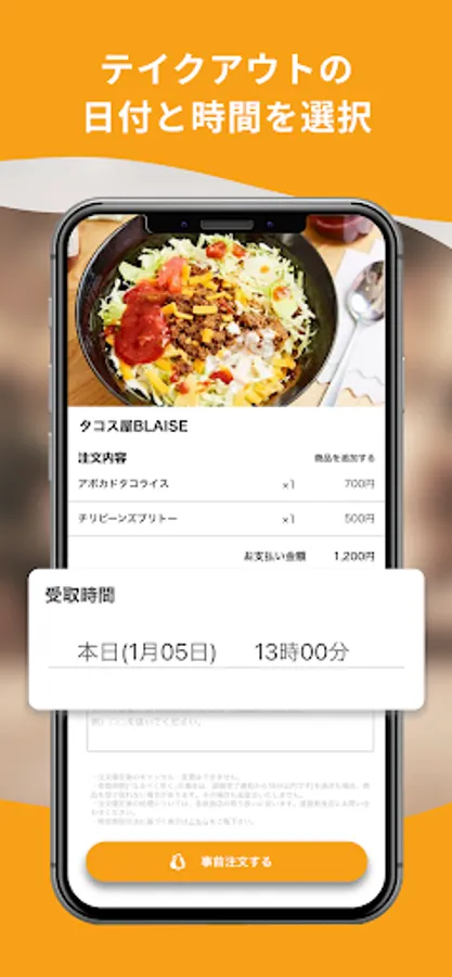受け取りたい時間を指定し、アプリ内でラクラク簡単に事前注文・決済を済ませることができます。