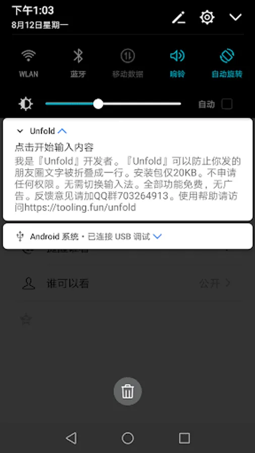 In the market, such products are mostly in the form of input methods, and it is necessary to switch the input method, which is troublesome to use. The "Unfold" I developed uses an auxiliary service to achieve anti-folding and minimal operation.