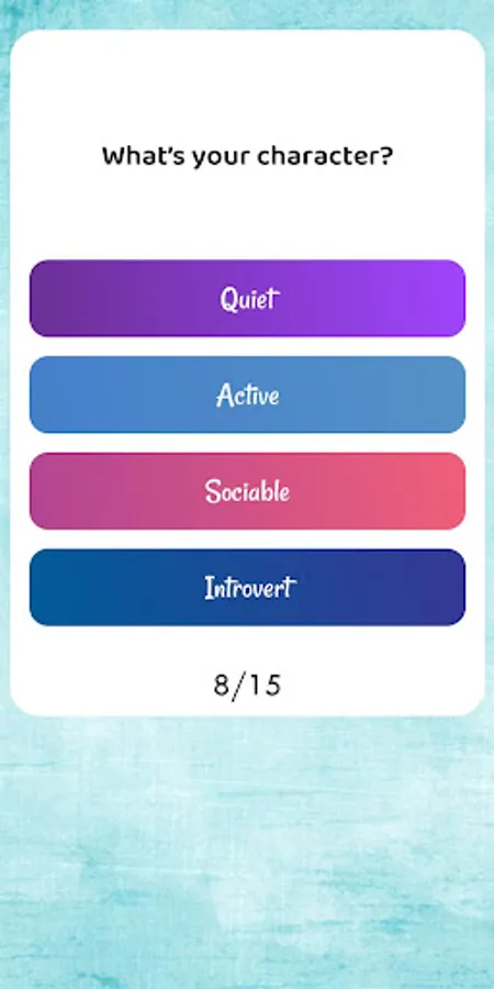 In this game you just have to select the option that is best matching with your personality. There is no right or wrong options, you just select the perfect option for you.