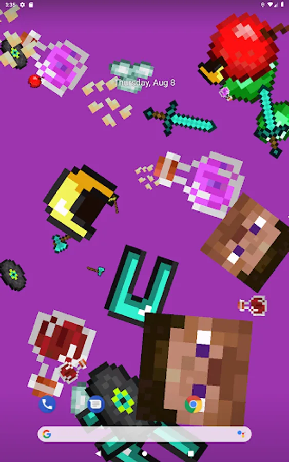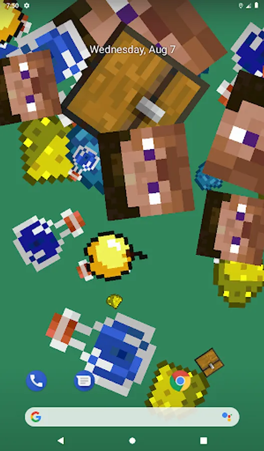 Minecraft Live Wallpaper is an application in which you can customize wallpapers with moving pixel objects from the game: picks, hearts, swords, shovels, skins and much more. 3D wallpapers in the style of Minecraft will become the original background for your device. A large collection of items and wide settings will give you a lot of personalized options to set live wallpapers in the Minecraft style.