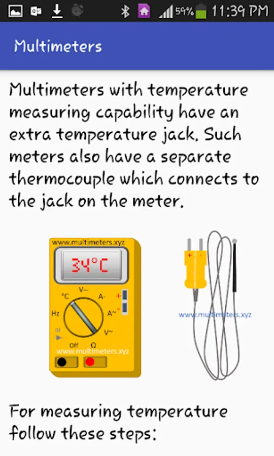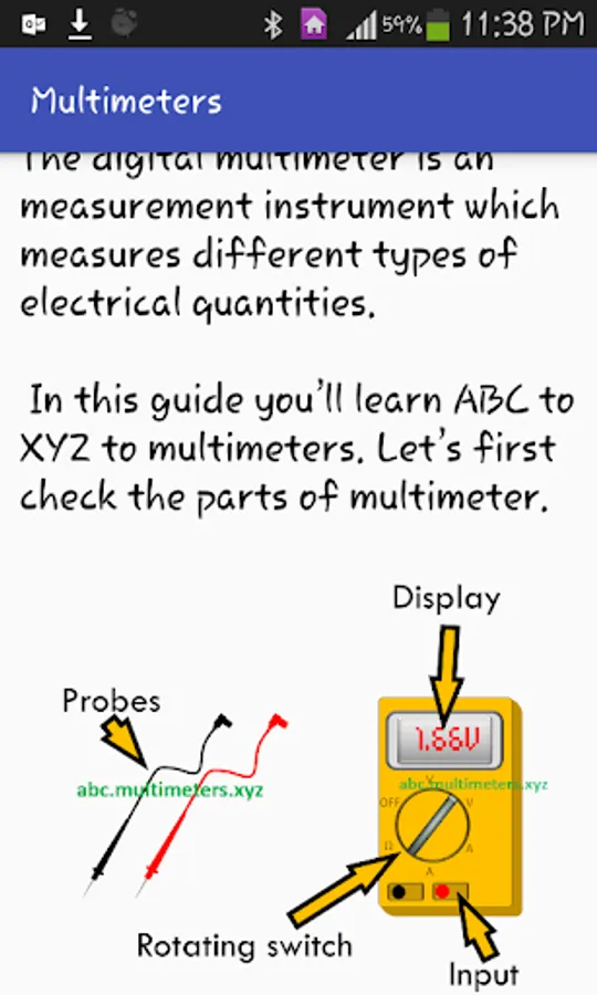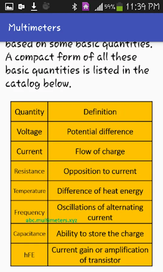 The online section of the app features Chapter wise information about Multimeter which is presented as follow: