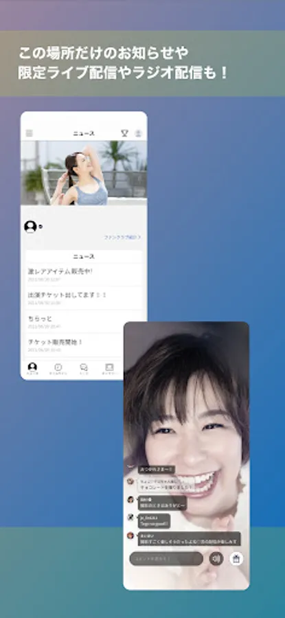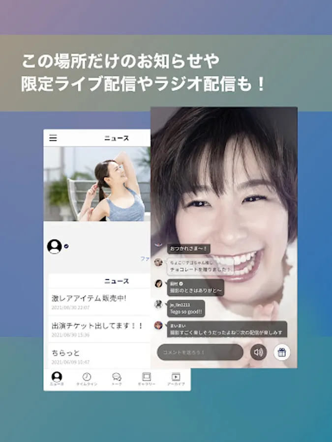 An app made just for fans. Join this special fan club and experience a premium moment unlike any other. Full of attractive content including live distribution and group talk!
