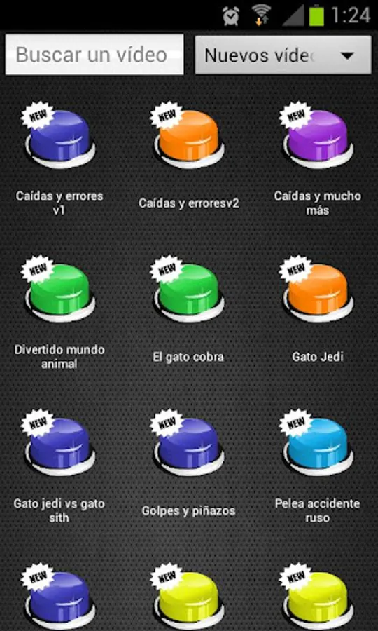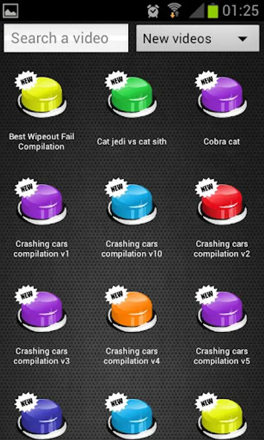 Funny Buttons has a button for each video and includes a filter by category and a search to quickly find the video you want to see.