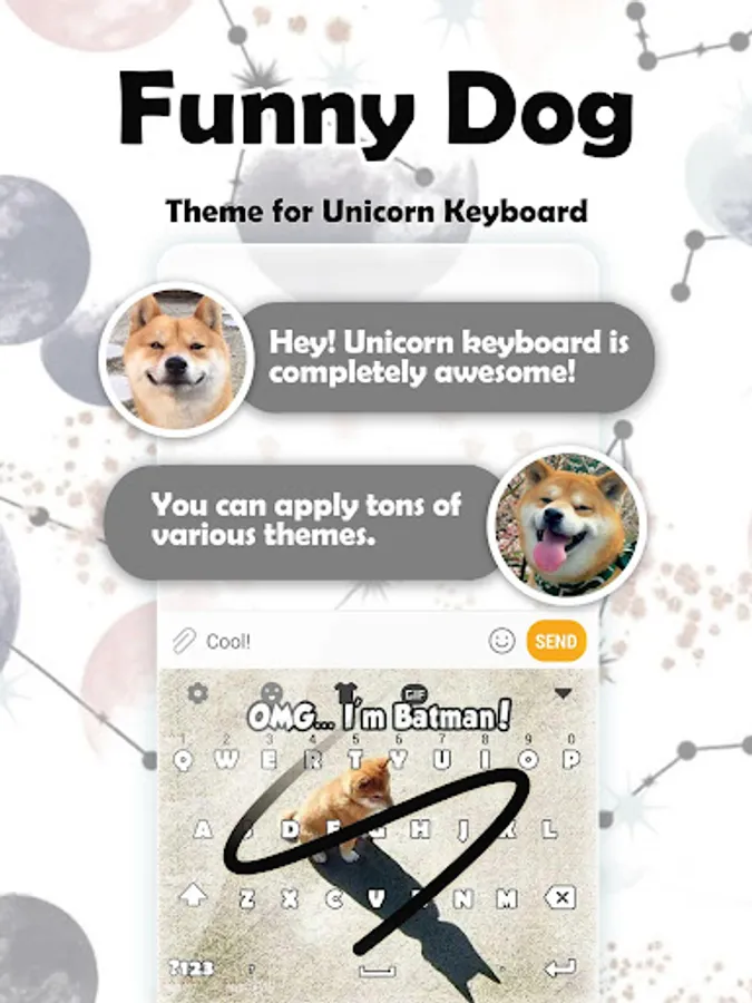 ✦ Decorate your phone with Funny Dog Free Keyboard Theme and rejoice in your new keyboard app!