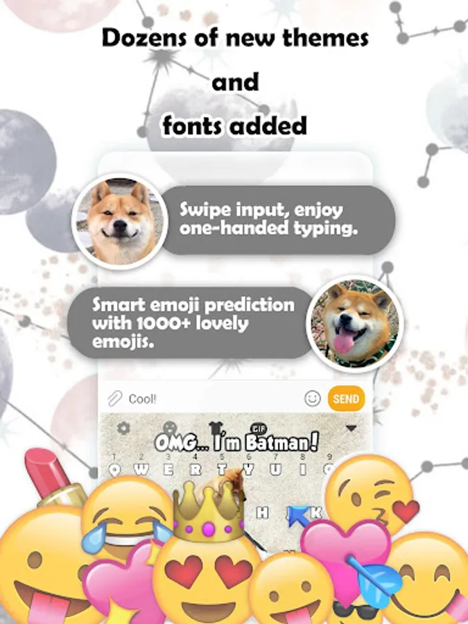 ✦ Download one of the cutest free emoji keyboard themes and let your phone shine with a fresh glow!