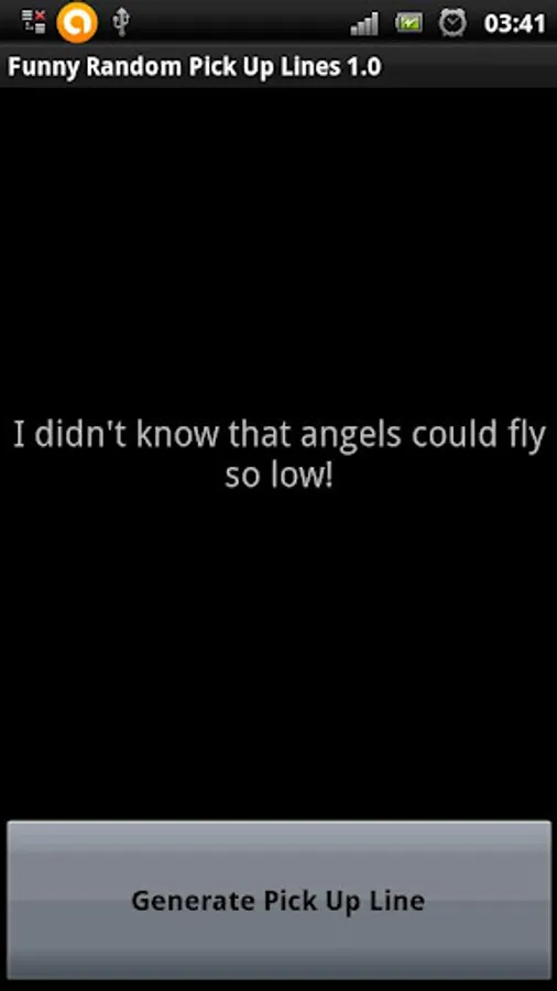 A real man should always be ready to start a conversation with the ladies!!! Never be out of lines again. This app is very simple and straight forward. Click the button, get a new pickup line. The girls can't resist a guy that knows how to approach them. Just remember: be funny and confident. Being rich also helps, but this app is a good start.