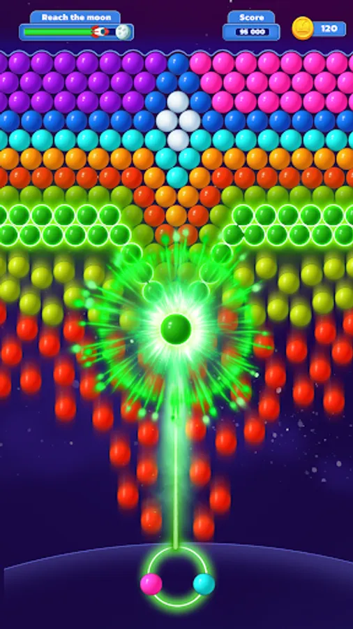 Shoot and pop bubbles to progress in this fantastic Bubble Shooter in space! Play smart to gain scores, meet goals and break your own high scores.