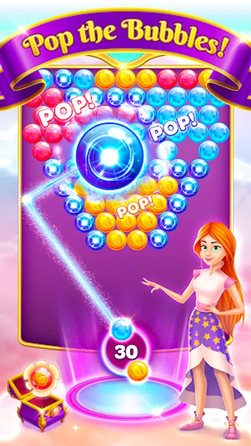 • Match 3 bubbles to pop them in this magical puzzle-shooting adventure.