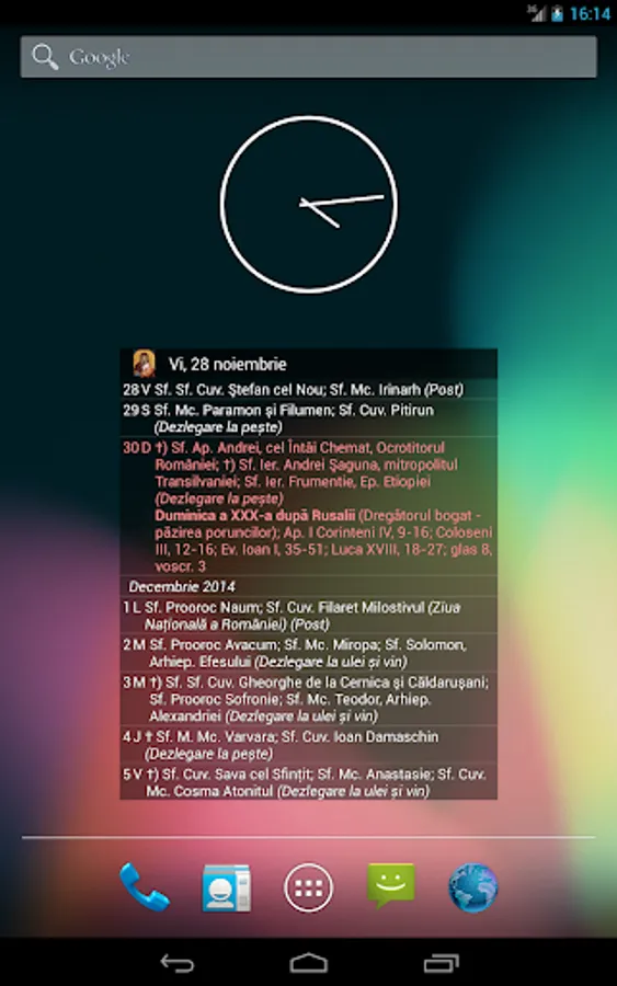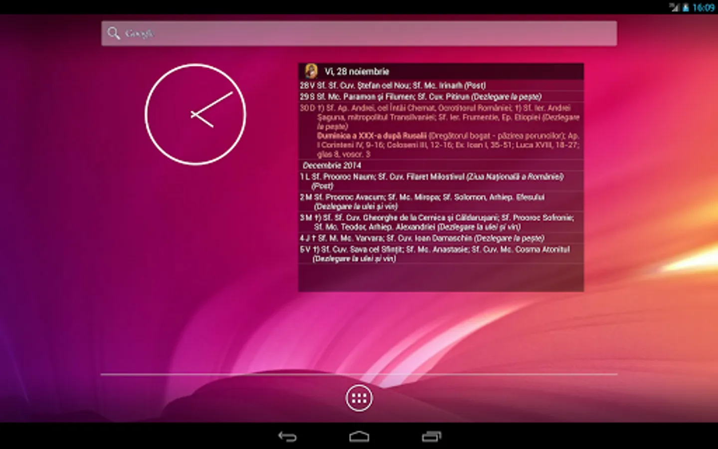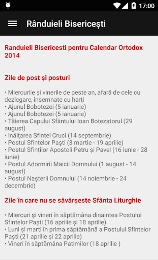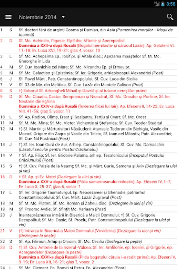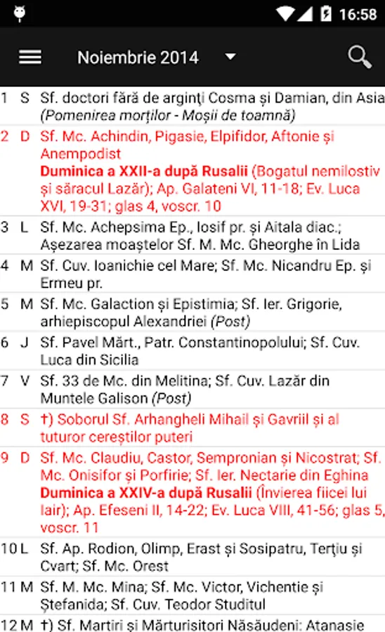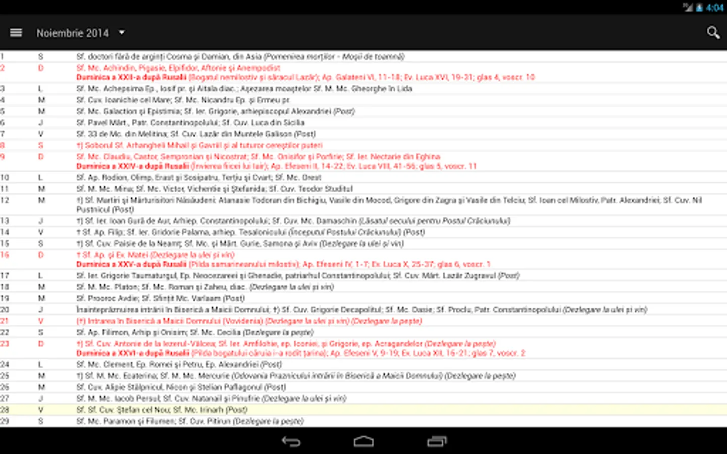 The application is for Orthodox Christians, has a pleasant interface and easy to use. At startup displays the current day and month. Using the touch screen, you can navigate to other days and months.