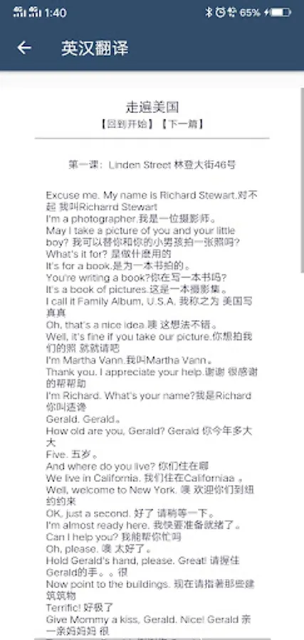 The English listening comprehension software of this software is American English with clear pronunciation, the content is traveling all over the United States, new concept English, and provides the English-Chinese translation function of the text, and the listening playback is synchronized with the text display.