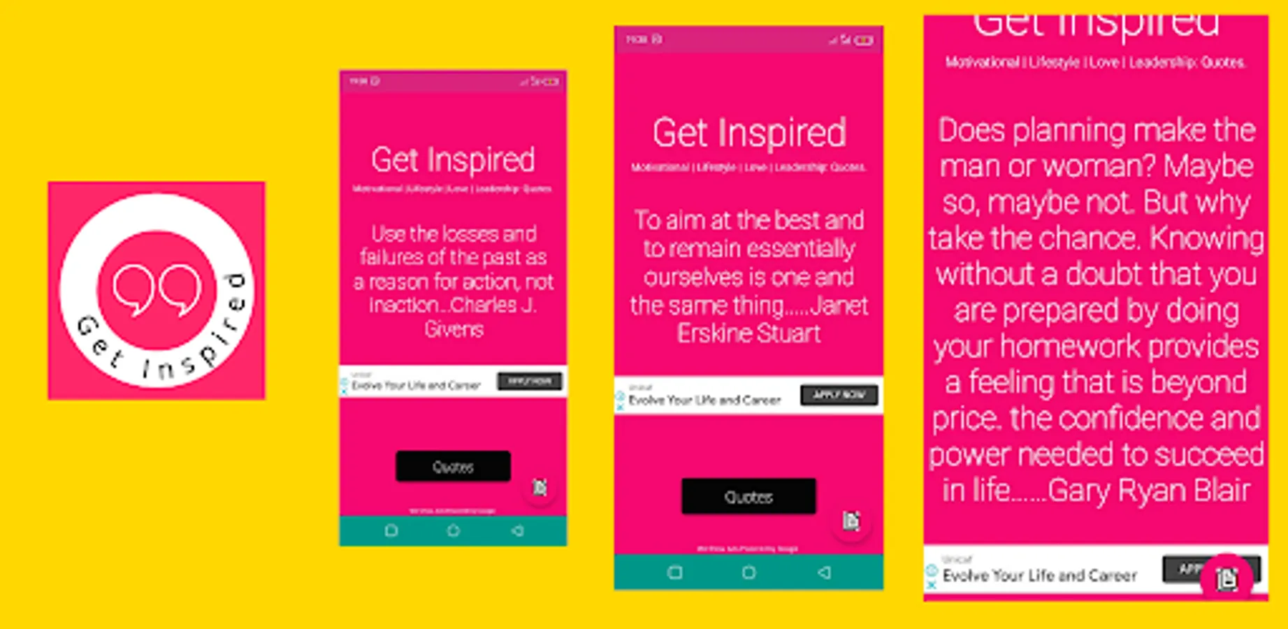 GetInspired is an Android for different Motivational, Lifestyle, Leadership, and Love Quotes from Famous People. #wisdom