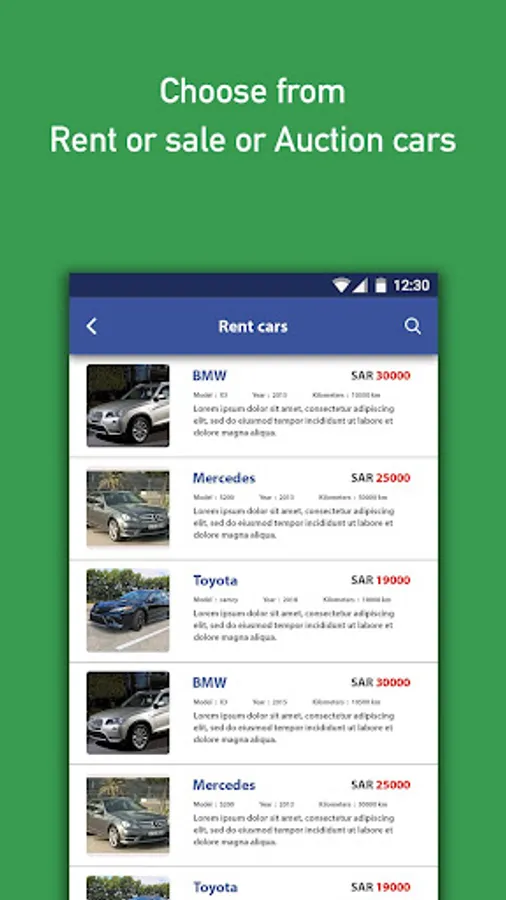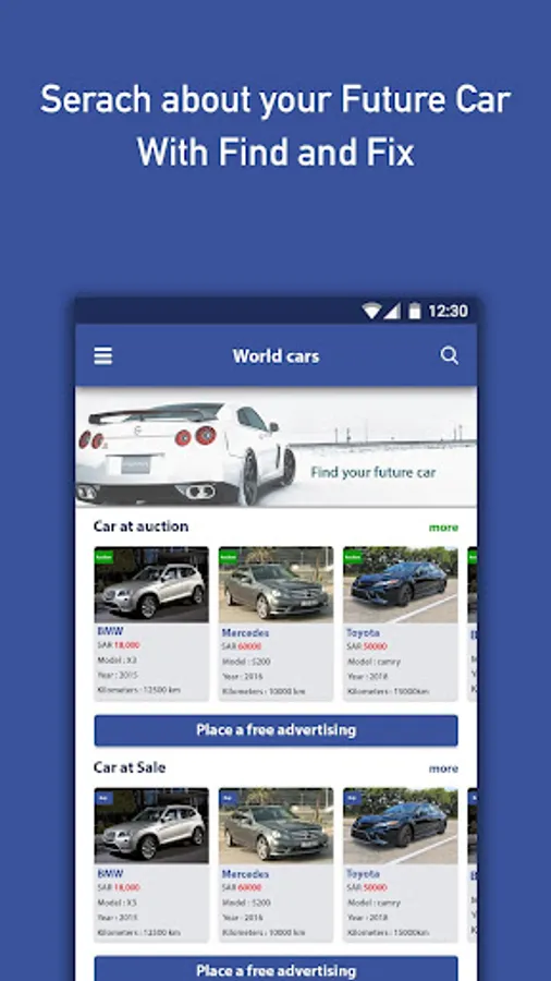 Application Worldcars is a fantastic application that displays cars for sale or purchase or bid and can all exhibitions to display their cars and their products from cars in general, of all kinds and models ,, so that it can be purchased from communication with the seller by telephone in order to complete the purchase as it can buyers from bidding on the work of any car ,, where the seller choose one of these offers in front of him in the auction ...