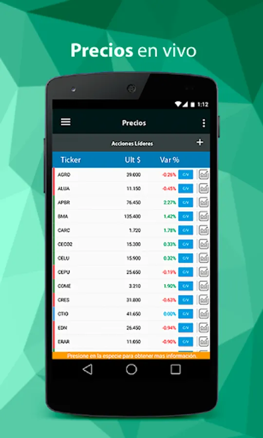 Prices in real time and access to detailed information on each species.