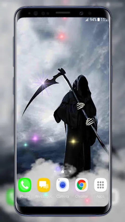 Get this free Skulls Live Wallpaper and set the “angel of death” for home screen! The greatest “scary wallpapers” with The Reaper will be a perfect decoration for every person who likes horror movies. He will reap your soul and take it gently without pain! The “Grim Reaper LWP” will bring the mystical touch on your phone! Cover your cellular with the best “dark wallpapers” with skull images! This “death skull wallpaper” is all that you need! Have your own villain superhero on you phone and let him protect you from itself! Go back to black by setting these “death live wallpaper”!