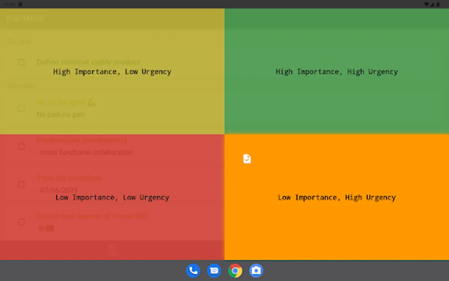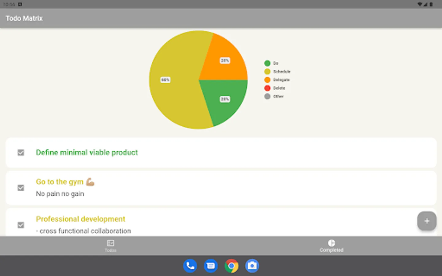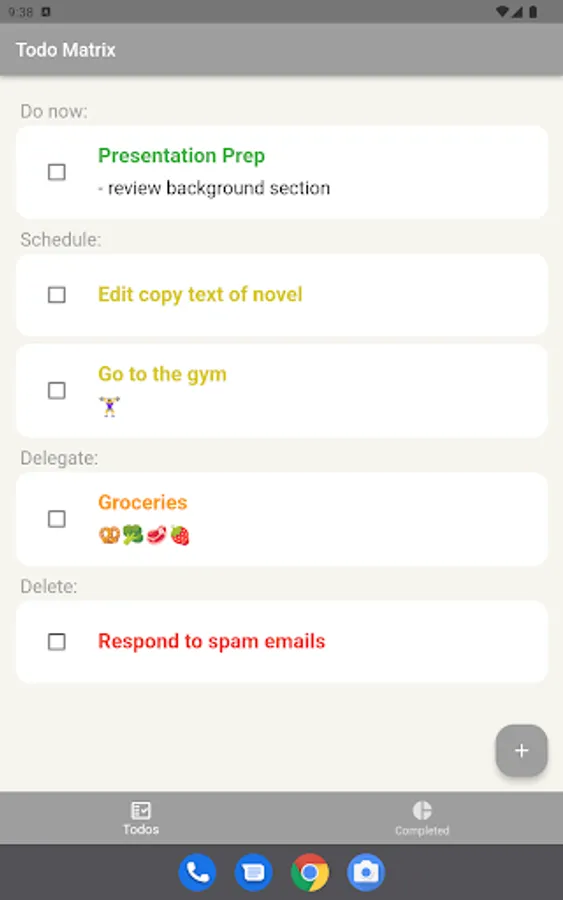 This app allows you to write to-do items and then immediately drag and drop the item to sort it into four categories. The list is automatically labeled, color-coded, and sorted. As you complete your tasks, you are provided with aggregated statistics so that you can get insight into how you are really spending your time. This can help you set goals to increase the amount of important activities you complete while decreasing the amount of time you spend on things that should be delegated or avoided altogether.
