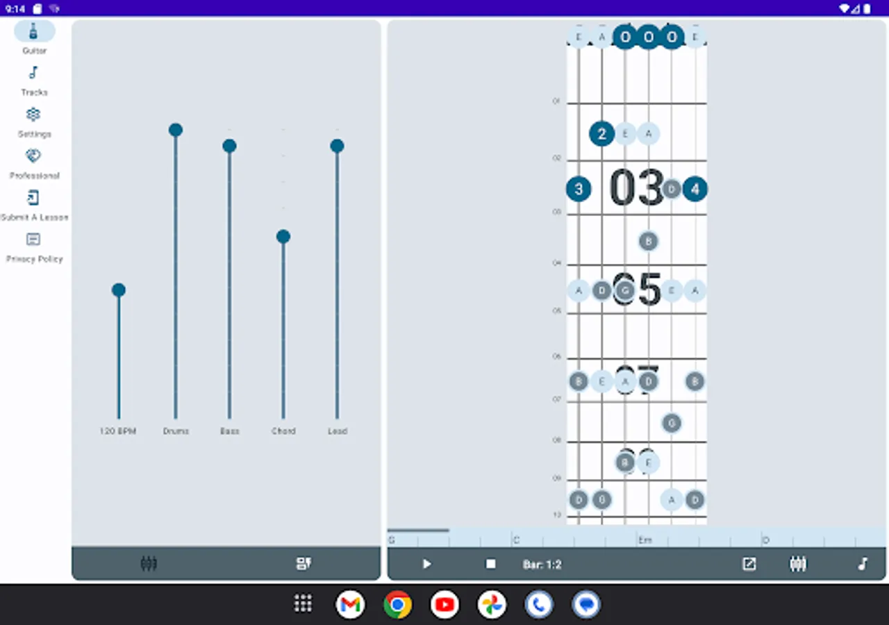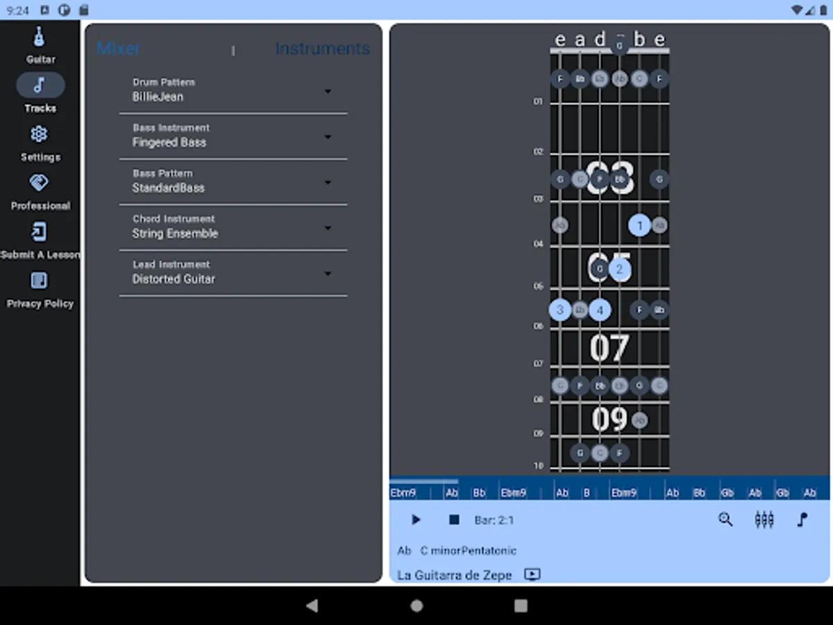 It's easy and fun to create your own backing track, or pick one from the track library which includes standard chord progressions and popular guitar songs by category.