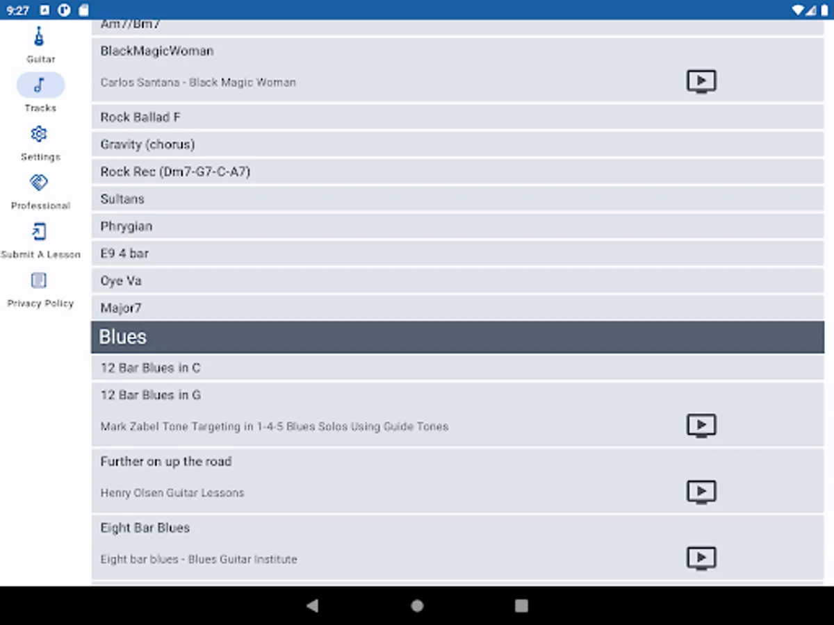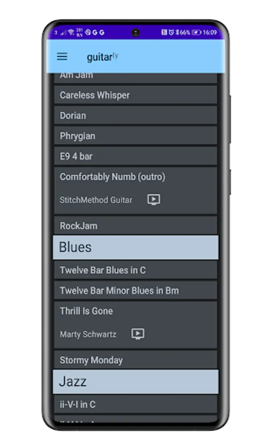 There are links within the app to leading musicians on YouTube to give guidance on a particular song or style. The library is constantly expanding with leading YouTube guitarists using guitarly for the backing tracks to their lessons. Submit your own lessons with a YouTube link!