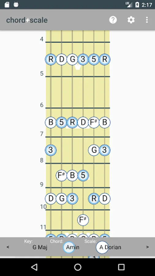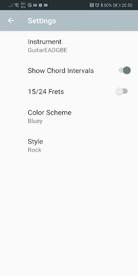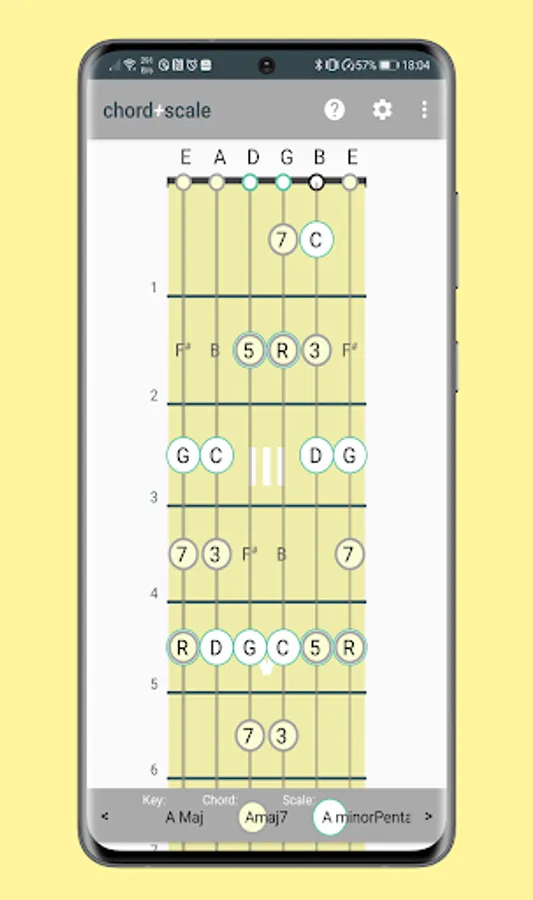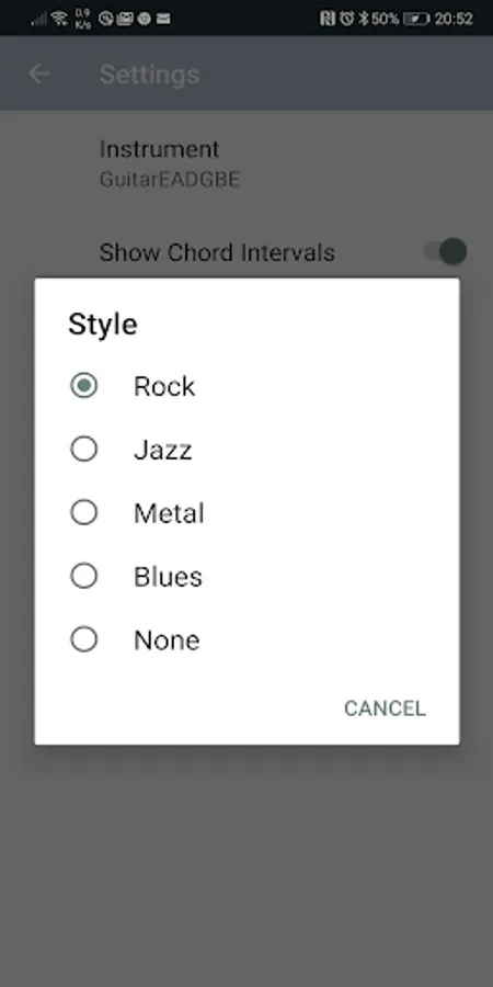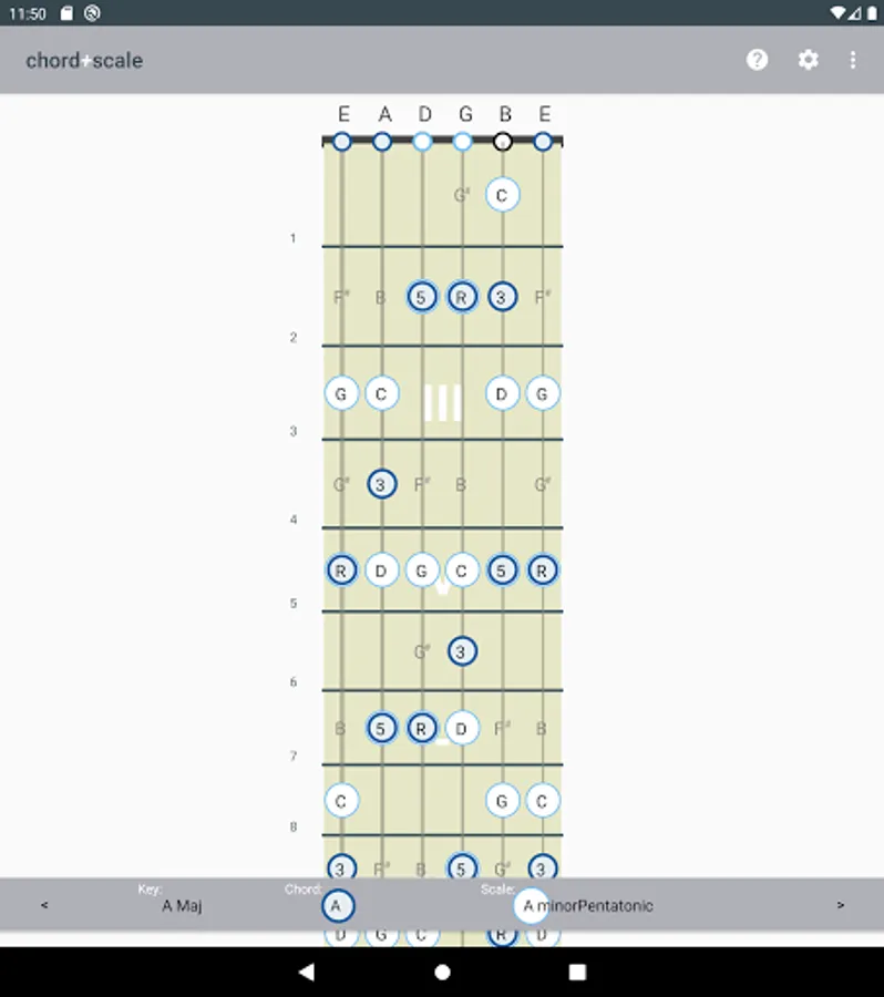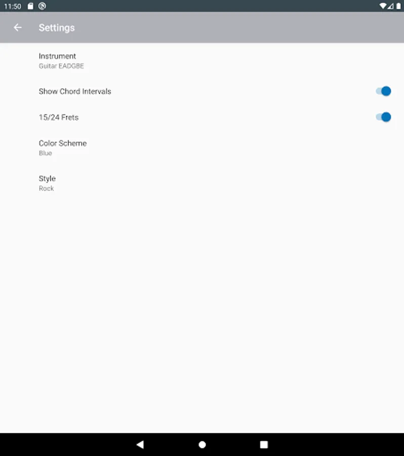 Set your musical style (Rock, Metal, Jazz, Blues or traditional) and chord+scale will adjust the chords and scales to your playing style.