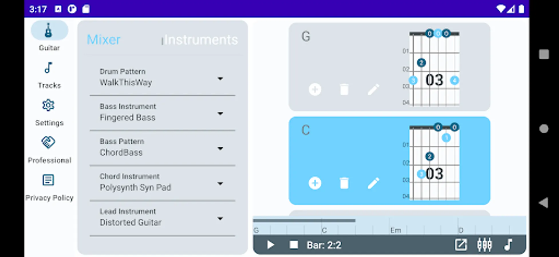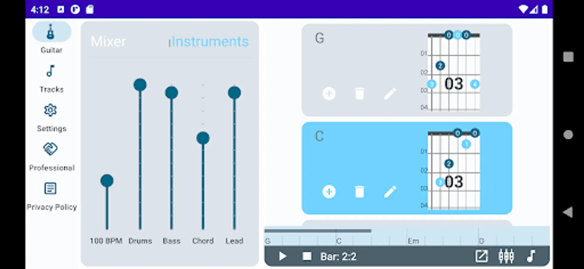 Save up to 12 tracks and unlock more sounds, bass patterns and drum patterns with the professional version.