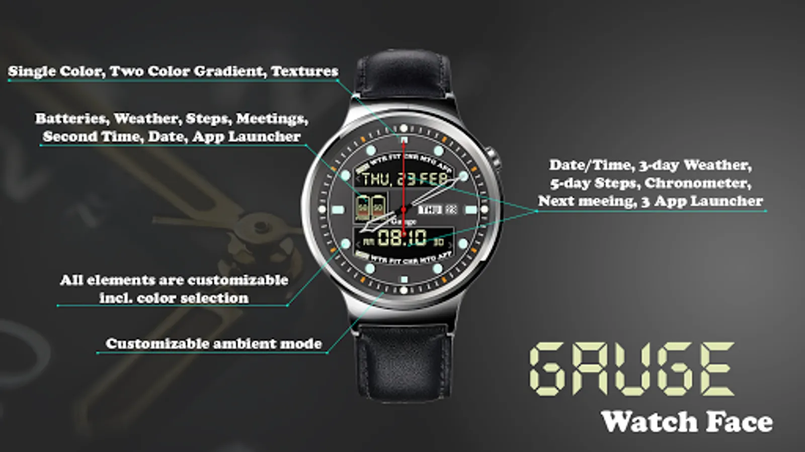 Gauge Watch Face is an interactive watch face with advanced customization for Wear OS!