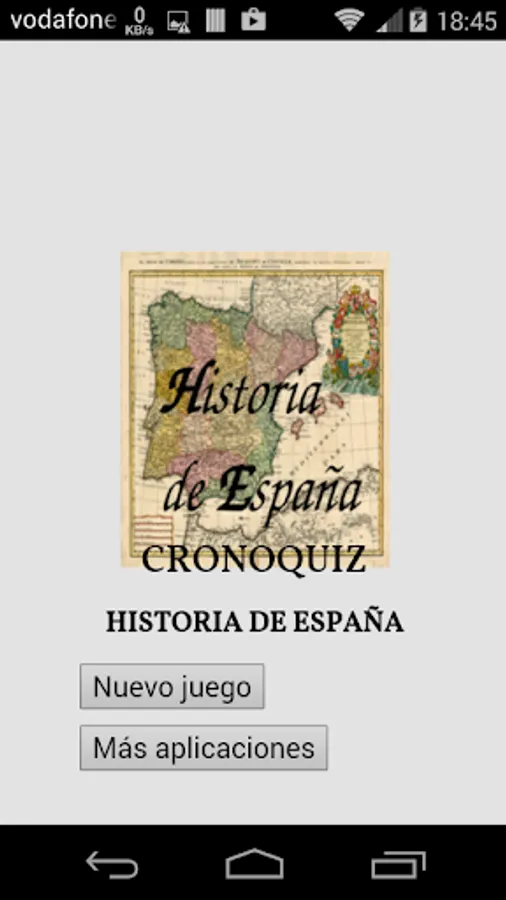 CronQuiz History of Spain is an application of questions and answers focused on the chronology of important events for the history of Spain. You can select which periods you want it to ask questions and level of difficulty, being the perfect place to second Bachelor highest level.
