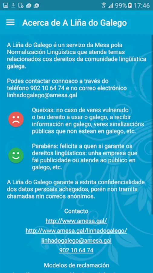 É lina do Galego's a free Servizo Mesa pola pola offered Linguistic Normalization Dirixido all to poboación since 2007 atende or consultations on linguistic Dereitos and processed ore Queixas face institucions, companies etc which will violate; and parabéns to quen dea steps to guarantee or face Dereito to live in Galician.