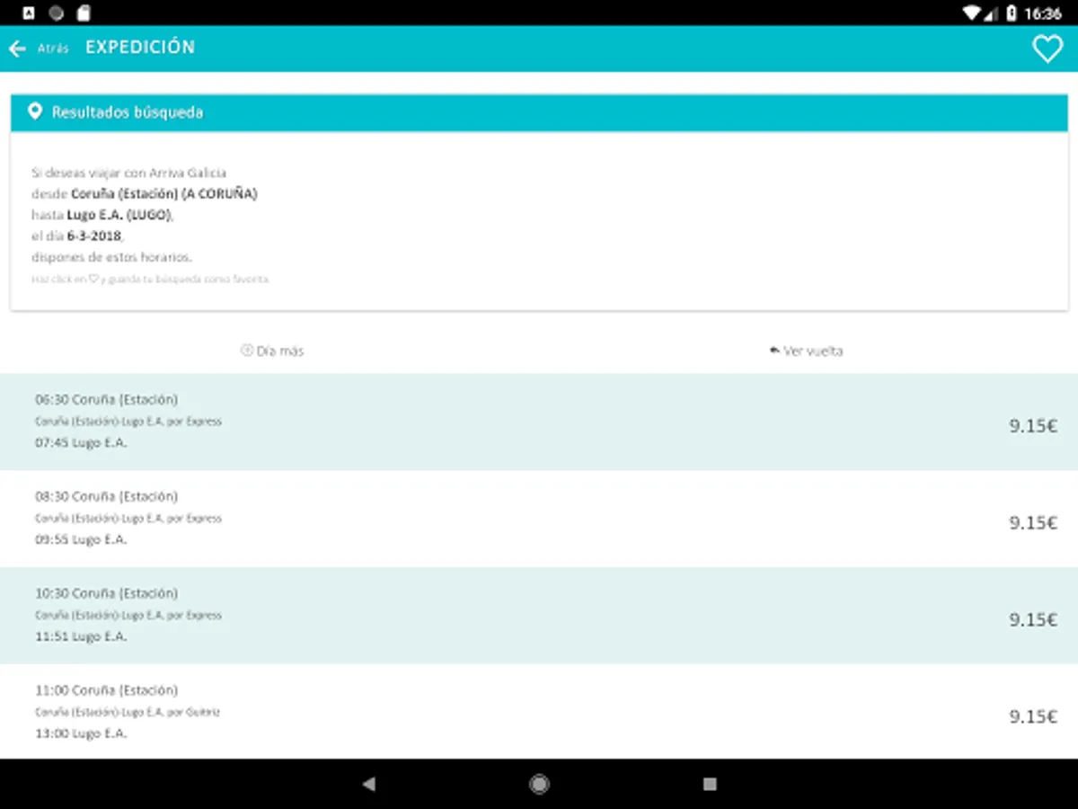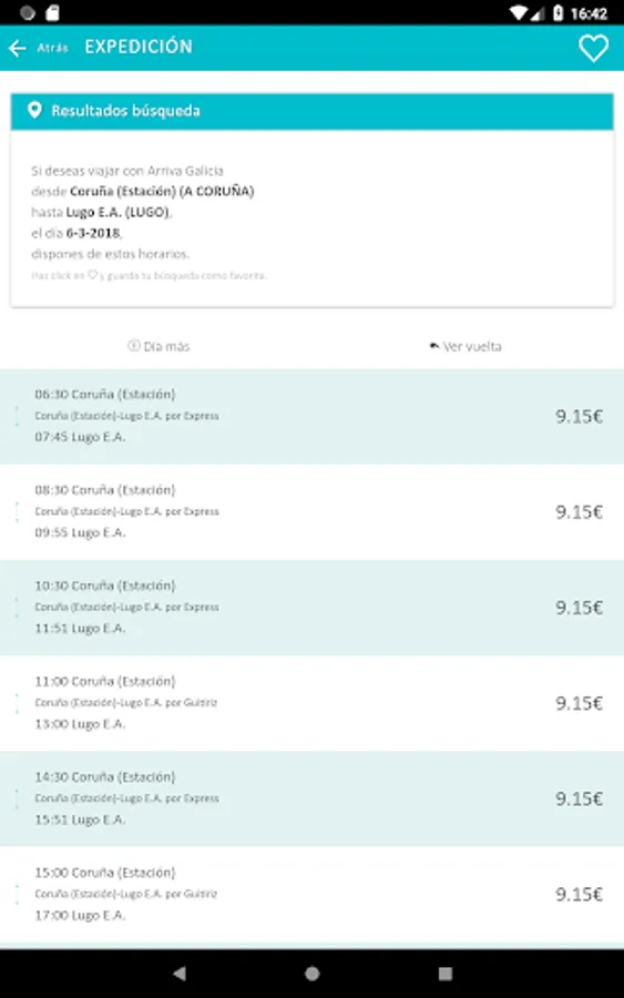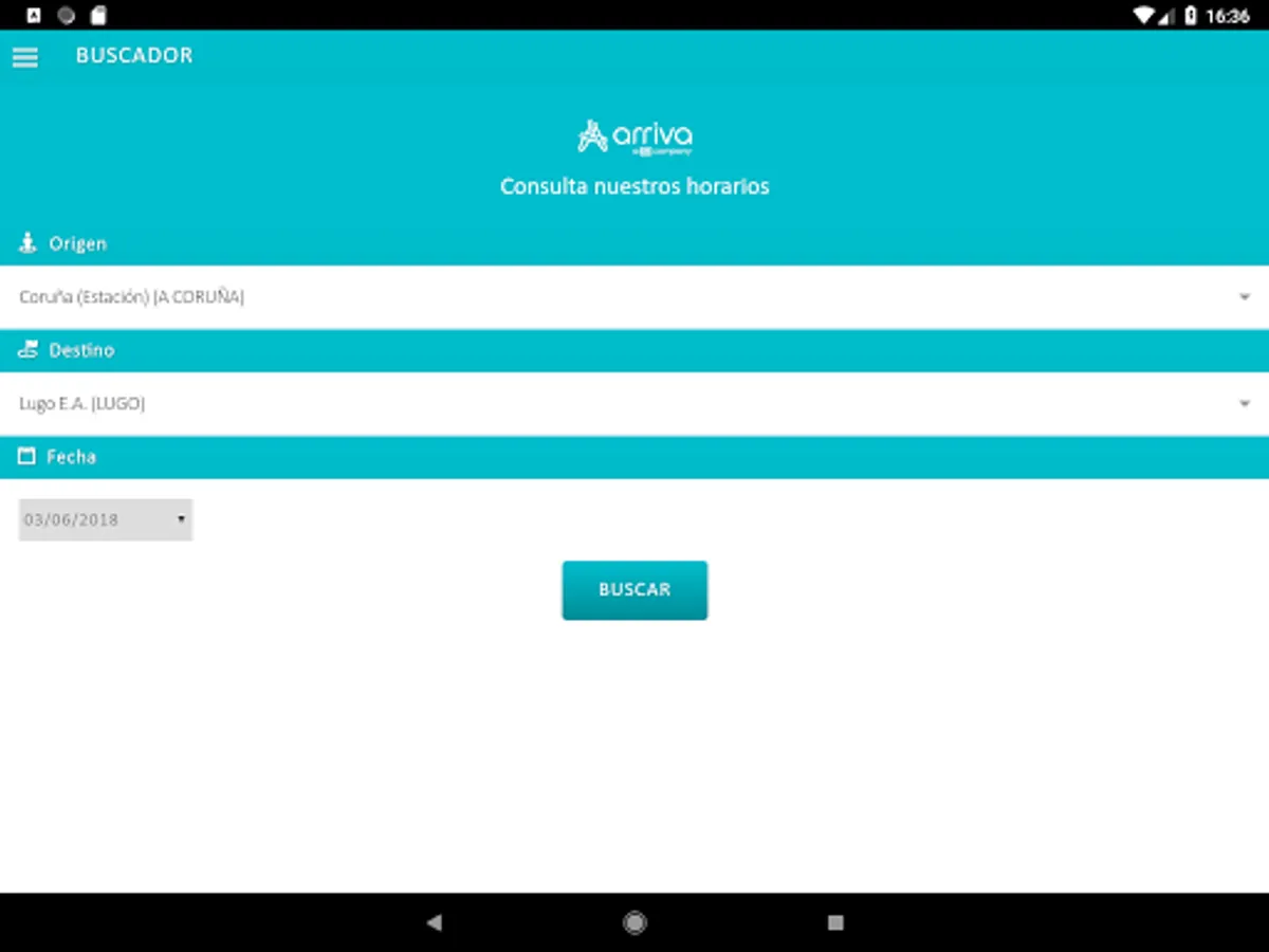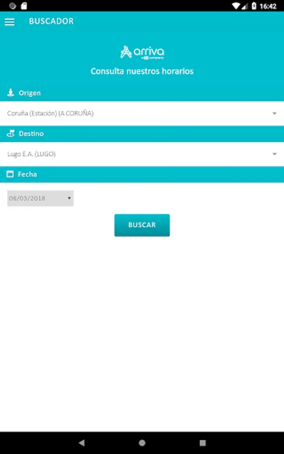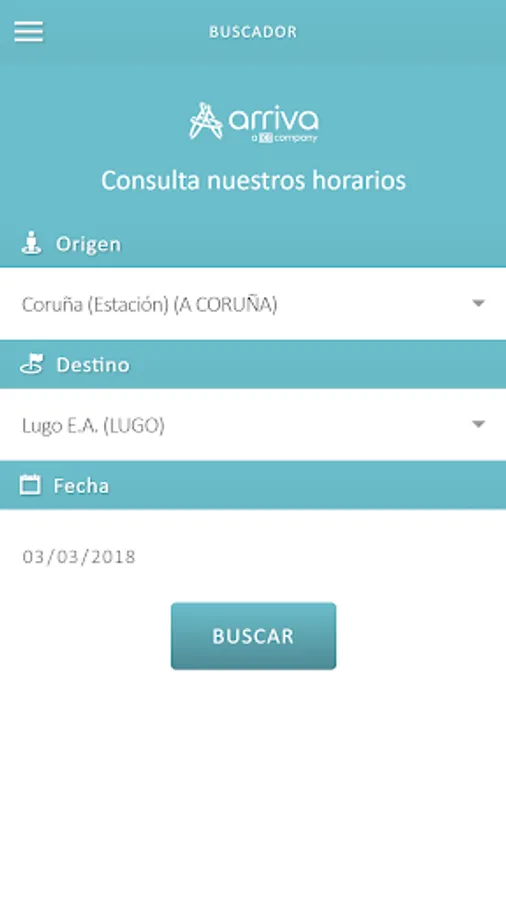 ARRIVA official application of Galicia. From it you can view the schedules for all routes operated by Arriva in Galicia.